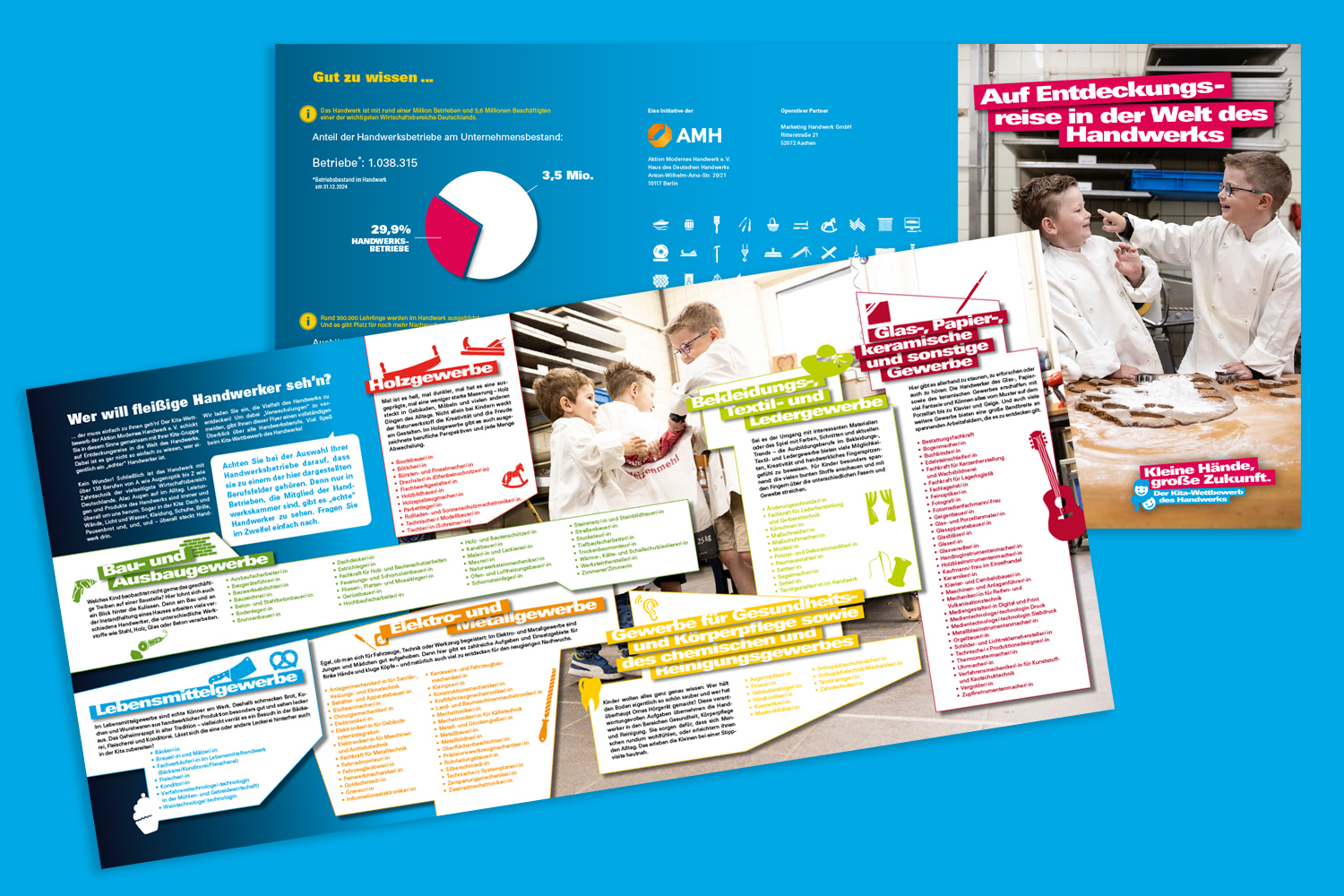 Warum Handwerk? Dort können Kinder direkt sehen und erleben, wie die Dinge unseres Alltags entstehen – in der Backstube oder Konditorei, im Friseursalon oder beim Augenoptiker, beim Schreiner oder Dachdecker, im Heizungs- oder Metallbau, beim Steinmetz oder Straßenbauer, in der Werkstatt, im Atelier oder auf der Baustelle.