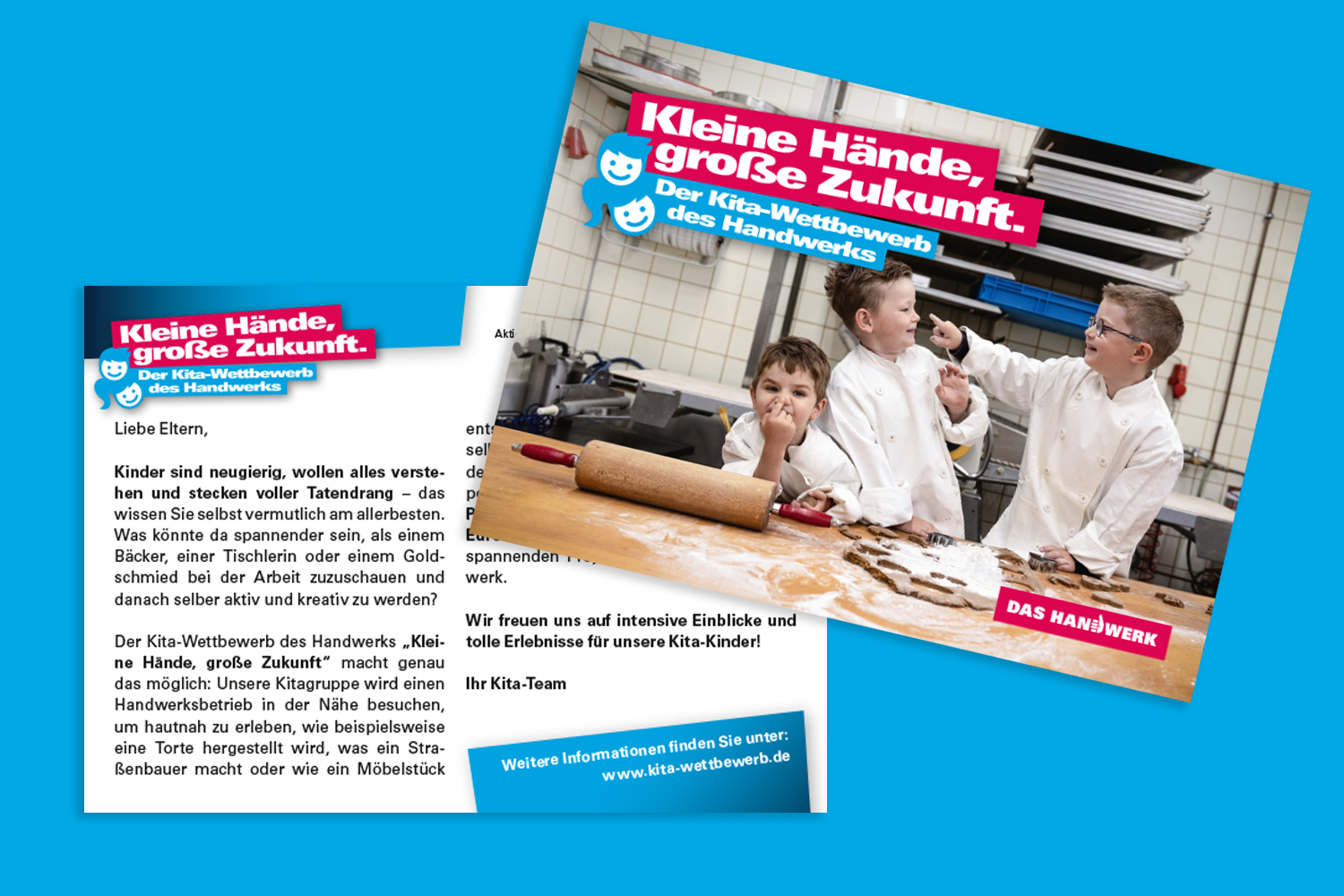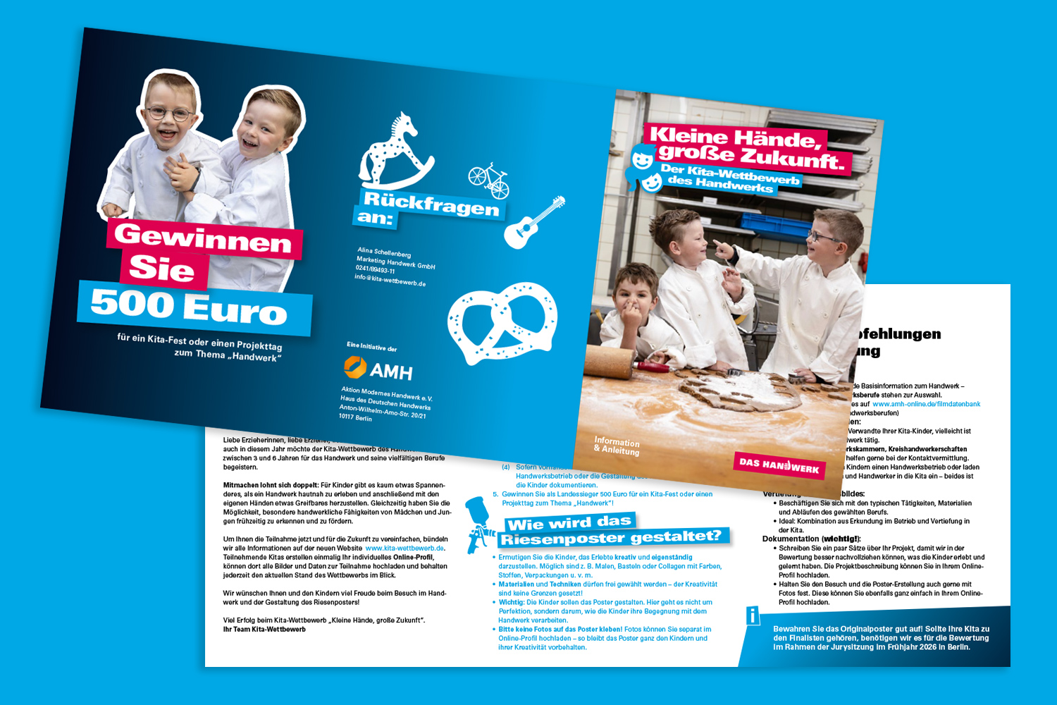 Und so läuft es ab: Nehmen Sie Kontakt zu einem Handwerksbetrieb in Ihrer Nähe auf und vereinbaren Sie einen Besuchstag. Die Kinder erleben dort das Handwerk hautnah. Danach gestalten sie in der Kita ein Riesenposter, auf dem sie ihre Eindrücke verarbeiten. Das wird bis zum 20.03.2026 eingereicht. Jede Kita, die mitmacht, hat die Chance, als Landessieger ein Preisgeld in Höhe von 500 Euro zu gewinnen.